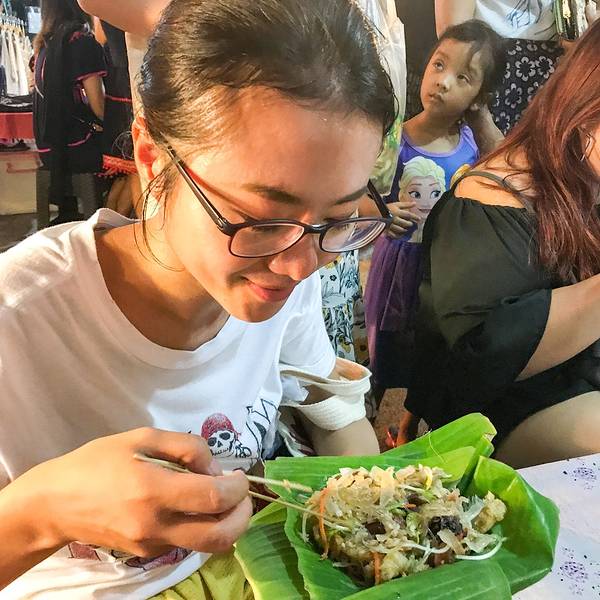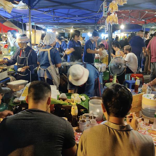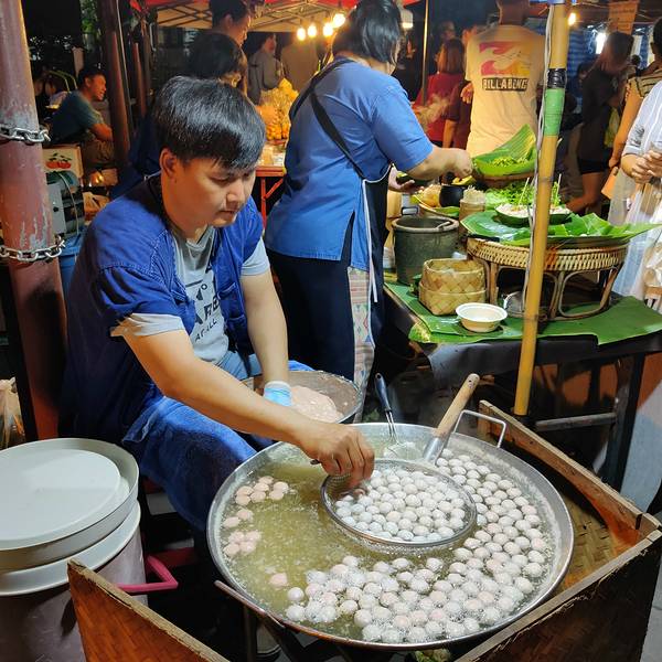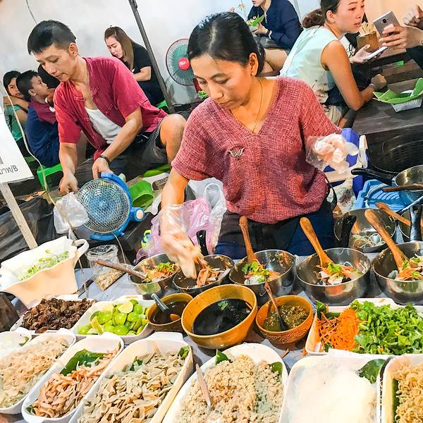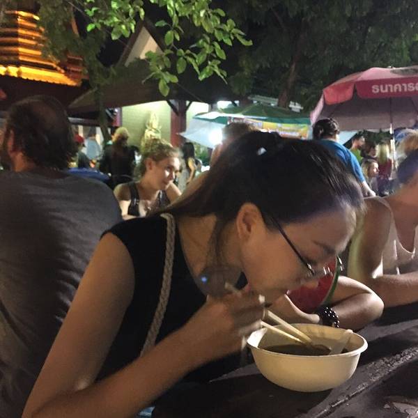 大概下午五点半到清迈,准备冲向周日夜市清迈的周日夜市可以说是整个清迈最热闹和规模最大的夜市了,大到没朋友。整个周日夜市从塔佩门开始到契迪龙寺结束。我和妈妈两个人从五点半开始自塔佩门出发,往终点一路...大概下午五点半到清迈,准备冲向周日夜市清迈的周日夜市可以说是整个清迈最热闹和规模最大的夜市了,大到没朋友。整个周日夜市从塔佩门开始到契迪龙寺结束。我和妈妈两个人从五点半开始自塔佩门出发,往终点一路上逛吃过去,到十点半我们两人已经筋疲力尽,才刚刚把主路的夜市逛玩,更别提还有很多的岔路延伸出去的地方。和周六夜市比起来,周日夜市更偏向于购买特产、服装和各类手工艺产品,美食摊位相对较少。但有个泰北凉拌粉丝着实让我惊艳。没错,就是这个粉丝,据说老板娘是厨艺学校的老师,只有周日夜市出摊,凉拌的酸辣味出奇的好吃,至少要等十几分钟才能吃到。回国后一直心心念念。