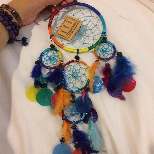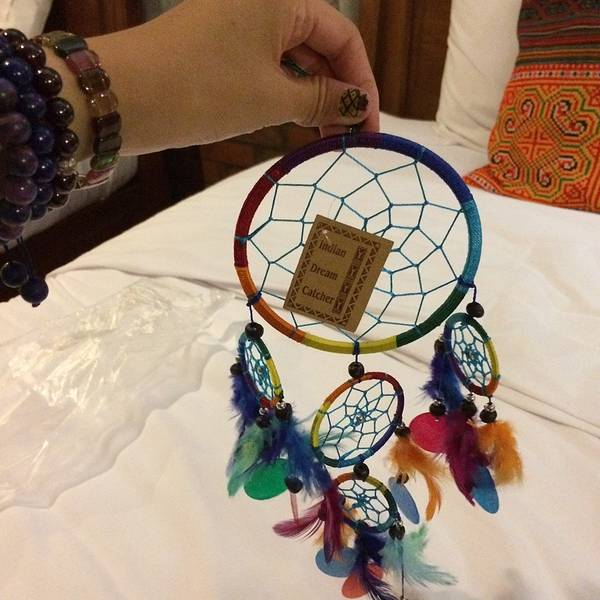 注意⚠️:双肩包一定要背前面,小心防盗!不知道是什么,但很好吃,甜甜的椰肉冰淇淋不好意思同志们,集市太大,我只光顾着逛街,没怎么拍集市的照片,吃的倒是都拍了,很好吃,各种小吃,有的照片是我吃了一半才想起来拍个照的,大家将就看看妈妈人生第一次画纹身!哈哈哈哈,当然是会褪色的那种,能保持2个礼拜吧,花色自选,画起来也很快,十几分钟就好了!是用特殊染料画的,画好之后,不要碰水,等干透了,会自动剥落,花色就留在手臂上啦,洗澡啊什么都不要紧了。我妈妈这个纹身有点花掉了,因为碰到水了,大家注意不要碰水就不会花了。这是集市里一个艺术家用牛皮雕刻的,再染色,非常漂亮,做工超级精致,就此一家,我咬牙买了一幅,很大一张,一眼看中,很喜欢,开心。捕梦网,能把美梦捕住,梦想成真哦,哈哈哈,这个七彩的,好漂亮!