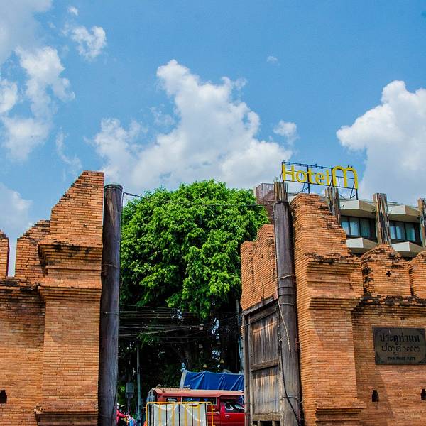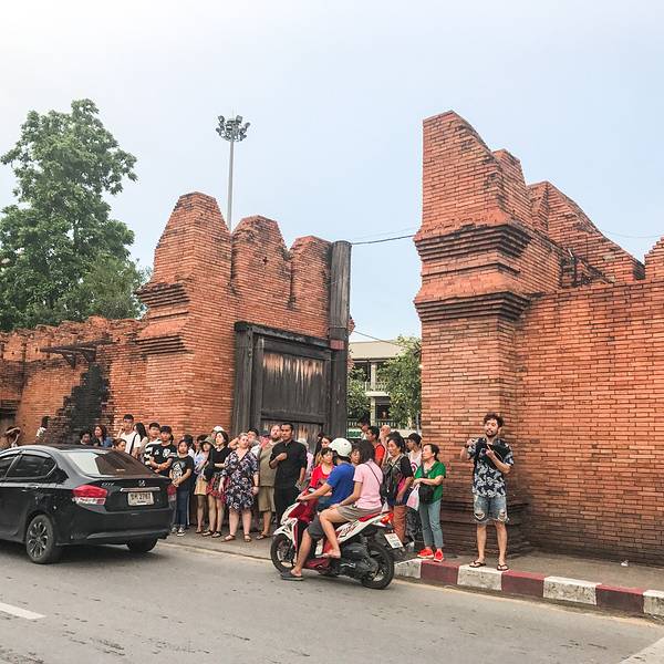 清迈 最有名的一处城门,于1296年建成, 清迈 古城刚建成时,用红色砖块砌成的围墙高达两米,...