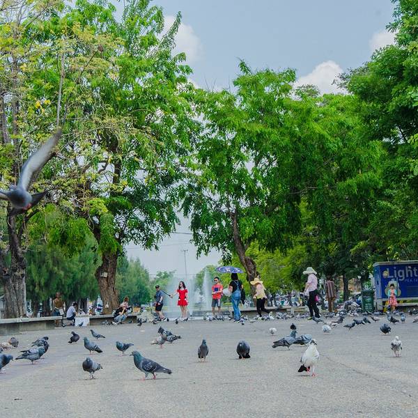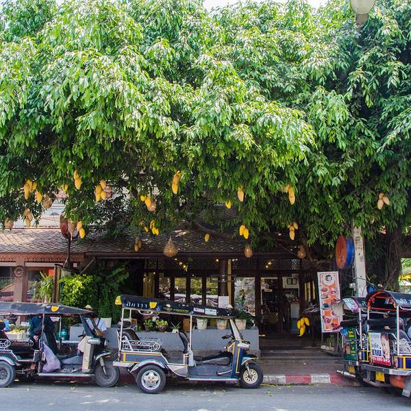 清迈 最有名的一处城门,于1296年建成, 清迈 古城刚建成时,用红色砖块砌成的围墙高达两米,可惜经历岁月沧桑,现在只留下这道门了。听说周日夜市沿着这条路往北就是了。塔佩门前面有很多鸽子,可以买鸽子喂食,然后叫那个卖鸽子食的给你拍照,当时拍了一个五人合影的,此行程中唯一的合影,值得纪念呀。树上好多假芒果,我一直以为是真的