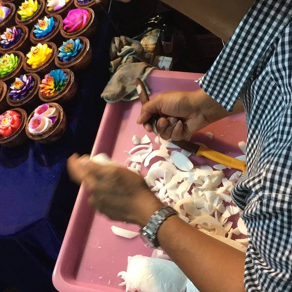 丛林飞跃回来,我们就直奔清迈的周日市场!清迈周一至周日都有夜市,但是最繁华的在周日,所以我们特地待到周日,就为了这盛大的美食夜市!!! 超级多美食!!!鲜榨的芒果汁和石榴汁。好喝!寿司!超级便宜,超级好吃!!!一定要多吃,不然你会后悔的!泰国手信烤玉米,烤香蕉。烤鸡排这个不知道是什么,感觉还行油炸类!新鲜椰子,主要看为了店主的刀工,赞叹不已!肉丸。我们没吃哈哈哈泰国手信果汁冰棍这个好像手工丝巾吧。