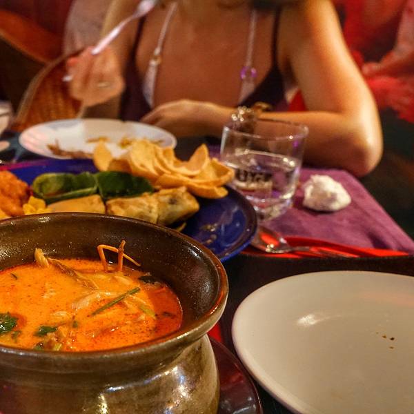 我们本来全程吃小吃当晚餐了,但是突然好像要下雨了,我们在一家经常需要排队的店HOT chilli解决了晚餐先看看会不会下雨再出去逛。还好只是下了一点小雨就停了,我们都笑说估计天公也不希望我们不能逛到周日夜市...