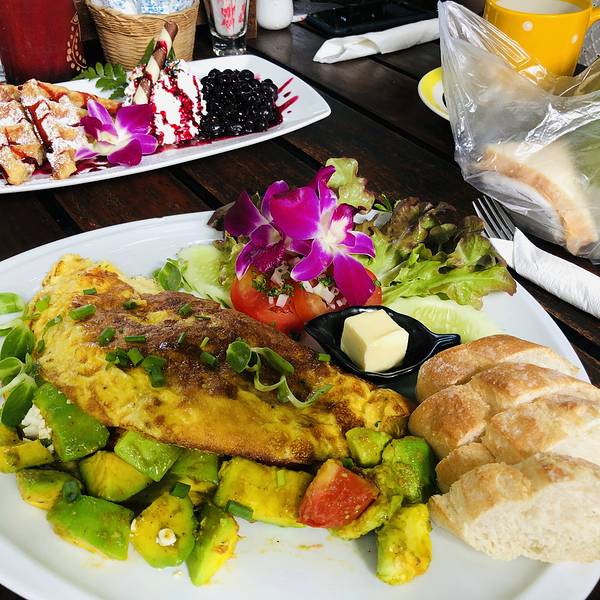 没有车的第一天,支付宝境外打车,来吃早餐咯,清迈早餐世界,中国人应该都会来过,外国人也不少直奔而去,环境真的非常惬意,舒适。室外坐着,绿树成荫,花香鸟语羚羊角一样的植物吉安的早餐,蓝莓搭配华夫饼和...
