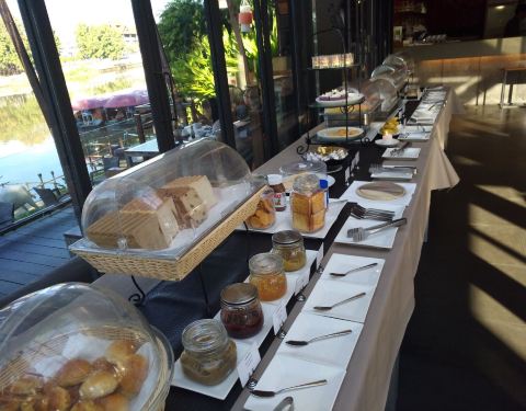 因为住在这家酒店,所以每天早上有在这吃早餐,据说住酒店的在这午餐中餐都可以打折! 餐厅没有在酒店里面,和酒店隔了一条马路,一面临河,环境相当不错,不过早餐的品种不是那么的丰富,少而精吧!毕竟不是那种接大量团队客的酒店!服务也相当不错!如果运气好,可以选河边的座就餐,一边还能欣赏古城河景!