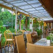 非常棒的环境,非常好的服务,各方面都是很满意的。从古城塔佩门附近前往,还是有些车程距离的。抵达后,先看到的是酒店,门卫告知往里走,走着走着,看到幽静小道,进入后豁然开朗,非常漂亮的环境。点了司康饼,热热的,高度很好,配的酱料到位。后来又享用了简单的晚餐,也很棒。傍晚时分,室外蚊子变得多起来,店员很贴心地拿来了驱蚊液,还开启大风扇。