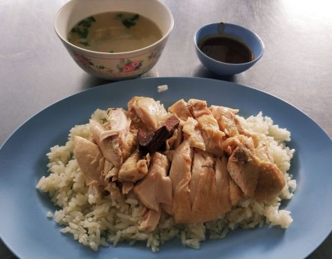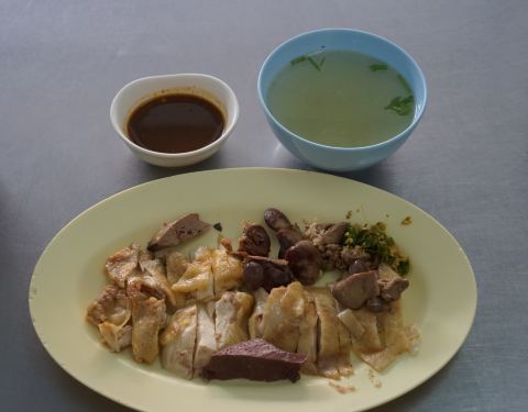 离发清海南鸡饭很近,就是白斩鸡的样子,口味比较清淡,有烤制的咖喱口味的肉串提供,口味不错,点了一个饭,一盘鸡肉,和几个肉串,和国内的比,当然可以说是价廉物美物超所值了