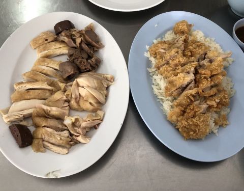 这边发荣和发清两兄弟的海南鸡饭铺子,上次吃过发清,今天就来吃发荣,点了海南鸡饭和炸鸡饭,炸鸡冷了不好吃,海南鸡还不错,鸡胗也很好吃。