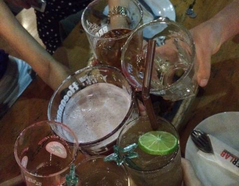 长岛冰茶也不错,酒味不是很浓但是味道好喝,后劲挺足的,晚上这边聊天的人十分多。