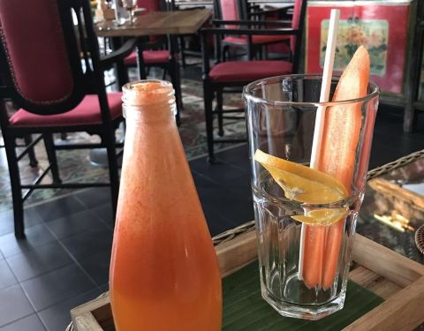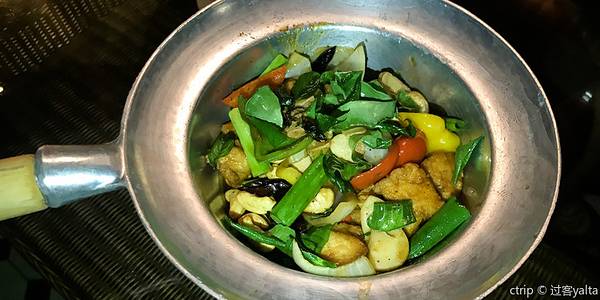 餐厅食物算很有档次,餐厅很大,而且布置的很有艺术感,花摆了不少,很漂亮,整个餐厅都充满异域风情,,上菜的时候都用藤篮装着,手工很好,好想带个回家,食物很清爽,除了泰国菜也是有西餐的,上菜速度有点慢...