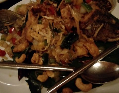 ...菜油放的太多了,那个黑鲈鱼不错,是特色菜,做的泰国的风味,有点点辣辣的,饮料里面巧克力冰沙不错