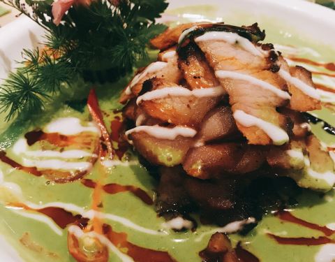 餐厅虽小,但是饭点的时候有不少人。门口和店内悬挂的小植物增添了东南亚的气息。餐厅主要供应泰国菜及国际…