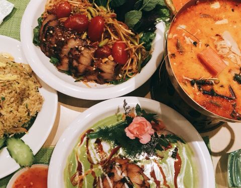 餐厅虽小,但是饭点的时候有不少人。门口和店内悬挂的小植物增添了东南亚的气息。餐厅主要供应泰国菜及国际料理,选择多样之余价格也非常实惠。