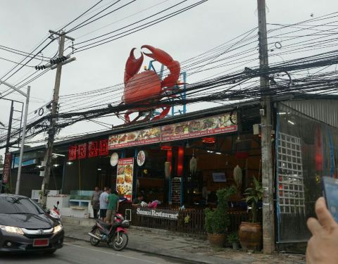 饭店位于米特拉对面,环境有点像大排档,门口有一只很大的红螃蟹。海鲜自选,活得龙虾,濑尿虾很多,店员很热情,有人会说简单的中文。我们点了一只1000泰铢的活螃蟹,咖喱味,菠萝饭很好吃,还有芒果沙冰,新鲜...