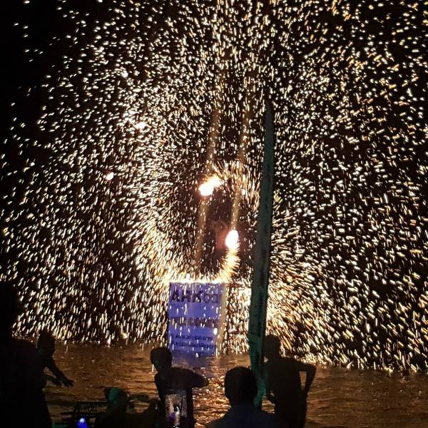 来到了著名的ARK bar,被很多攻略评为苏梅必体验的酒吧。沙滩边有焰火表演。本来想喝一杯再走的,但第一天体验过full moon party后,ARK bar的氛围和表演都显得有点小儿科了,逛一圈走人~当然如果是一群朋友在这喝酒聊天应该还是蛮爽的。