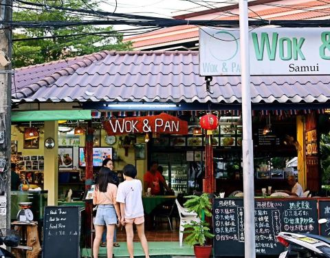 wok & pan,苏梅岛上面的人气泰国料理餐厅,我个人建议别坐在室外的位置,第一是太热,第二就是蚊子实在是太多了,室内的位置会很舒服。