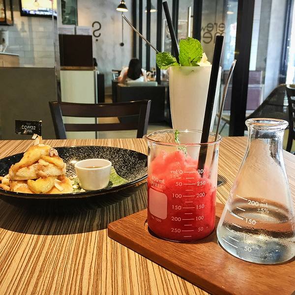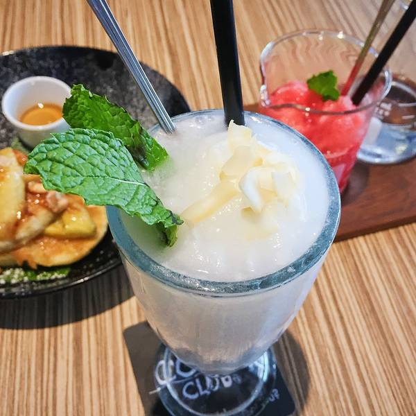 这几天在Chawen街上来回转悠这么多趟,还没正儿八经地喝过一次下午茶,刚好中午太热,于是进了这家整条街少有的有空调的咖啡厅。还蛮小清新的。感觉风格比较韩式的咖啡厅。菜单也是五彩缤纷的饮料为主。点了两杯饮品+松饼。依然是coconut shake,果然怎么做都好喝……不过性价比不如之前在路边小店或者大排档餐厅高。我要diss一下这一份,太难喝了,样子好看也掩盖不了的难喝本质。pancake也是不好吃……不是之前在街上吃到的那种香香的banana pancake,是传统的那种软软烂烂又甜又腻的,不推荐。这家店就在查汶街最繁华的那一段,环境不错可以吹空调,但出品真的就跟国内的那些网红咖啡厅差不多,没什么特色而且不好吃,要认真吃东西还是去路边的当地小店和大排档吧~作为歇脚地可以。