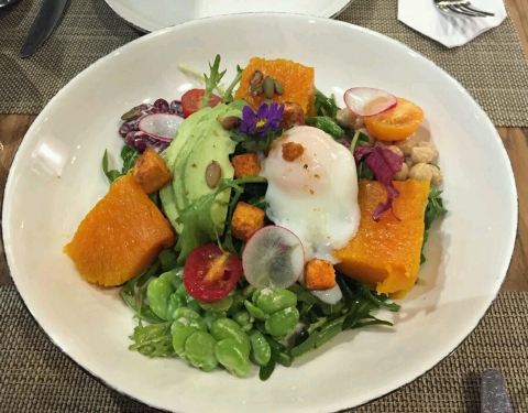 这个餐厅,如果你像图她的海景的话,就得去室外的就餐区,但是在室外的话中午会非常热,傍晚又会非常的吵,所以我觉得其实普通。吃的东西属于泰式改良的菜品。