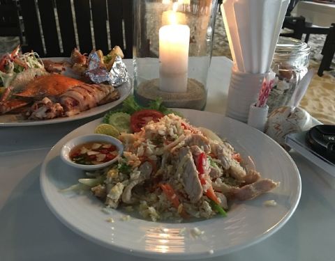 坐落在海滩上的这家餐厅,一边享受着美食,一边还有无敌的海景。于是打算在这里一边享受着岛上最美味的泰国料理,一边欣赏日落的美景。因为每一样看起来都很棒的样子,所以我们点了好多吃的。冬阴功虾汤的味道很地道,椰子红咖喱酱炸鲈鱼片的口味也做得非常棒,还有咖喱花生酱鸡肉沙爹,烤猪肉饼也是非常推荐的美食,这里的服务员都非常友好热情,店内环境很干净,整个餐厅的给人一种很亲切的感觉。吃过晚饭后,再沿着海滩散散步,总是一件很幸福的事情!
