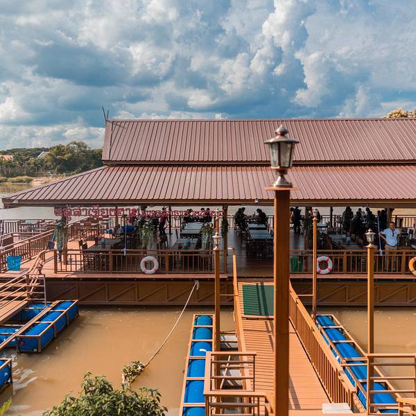 司机说午餐带我们去湄公河上吃饭,这是一家当地特色的餐厅LuLum 。价格也不便宜,860泰铢