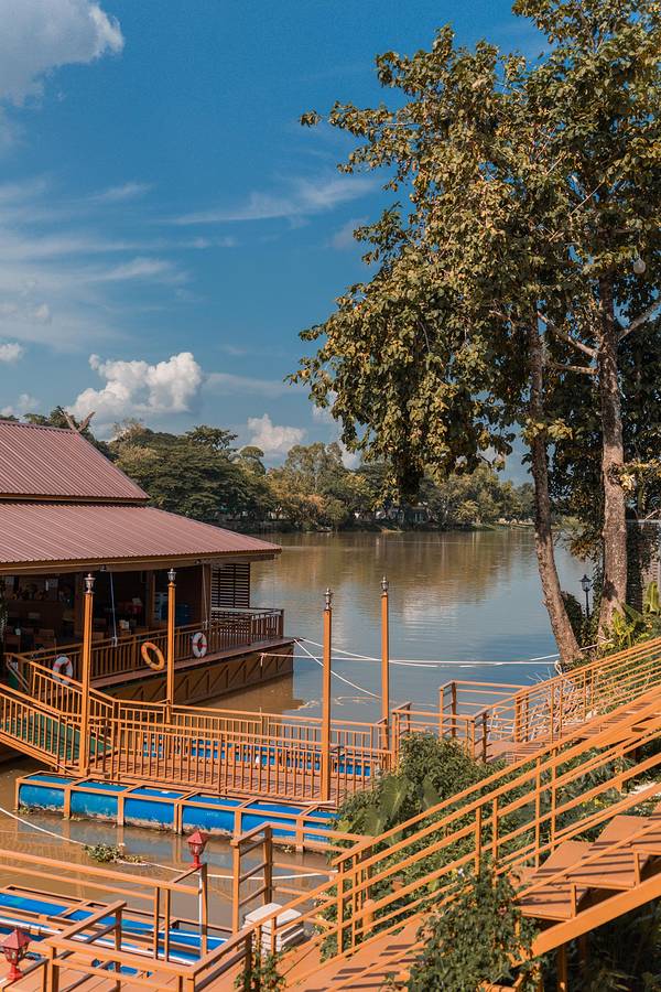 司机说午餐带我们去湄公河上吃饭,这是一家当地特色的餐厅LuLum 。它建在河边,面前的这条河是Mae Kok River,其实它只是湄公河的小小分支,四舍五入我们也算到过湄公河了吧。 餐厅很大,有一部分座位在船上,但...
