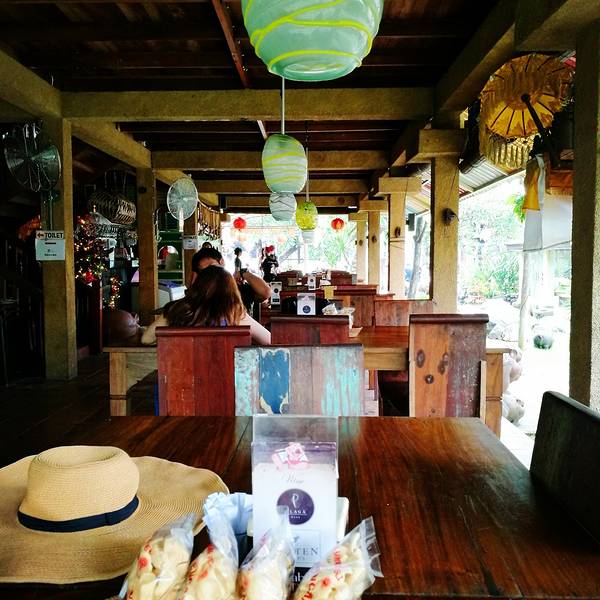 放好行李就出来觅食了烤猪排很好吃!~烤大虾超级辣,沙嗲串也很好吃,但又两串是很辣的。脆皮猪蹄挺咸的,炒面,烤鸡翅还不错。释迦果汁和石榴果汁很好喝!!在这个小亭子里面吃,还要脱鞋。。。。。有点日式其实...