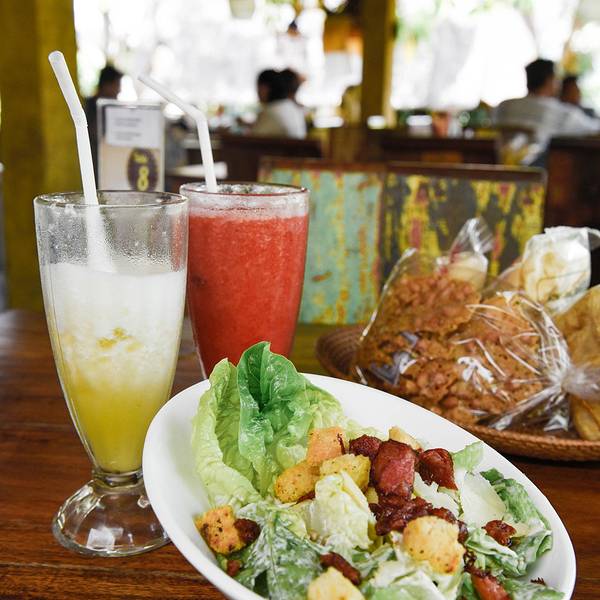 Warung Sunset Chef Yudi(评分:三星) 地址: Jalan Sunset Road, Kuta 电话: 6282247966000 逛家乐福顺便来的这里 环境: 第一眼很农家乐的感觉😂开玩笑啦……很有印尼风情,四周还有独立包厢环境很不错 巴厘岛不管是对高级的餐厅只要户外就避免不了苍蝇满天飞的现状,极度洁癖者应該会疯掉吧……反正我是习惯了 味道: 凯撒沙拉:真心比不上国内的很多餐厅,Just So So 烤大虾:能吃得出的鲜美,但是酱是甜的~OhNooooo天知道我有多讨厌吃甜的调味,很甜超级甜! 烤猪排:很嫩而多汁的感觉,可惜依然是甜的~ 脆皮猪手:这个是唯一一道不是甜的菜,还可以,但仅仅是还可以而已,东海的星伯X的猪手比这个腻害不止一点点…… 一句话总结,不合我的口味,因为店里的确有蛮多印尼本地人在吃,真心感觉口味差异不是一点点的大,但为什么我觉得酒店(Alila)的印尼菜还不错呢~