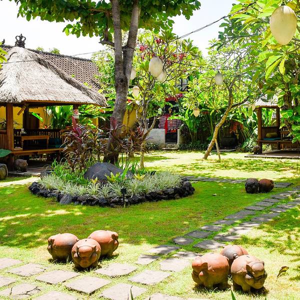 上午在摄影机构选完照片,11:30,包车司机来到酒店接我们,准备开始一天的北上乌布-圣泉寺之旅。 呐,在开始行程之前,要先犒劳肚子。 我们来到了离家乐福很近的warung sunset餐厅,这家最出名的就是猪肋排(pork ribs)了~ 院子里一坨坨的小猪,似乎在提示着我们,来这里不吃猪肋排会后悔噢~