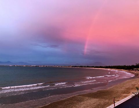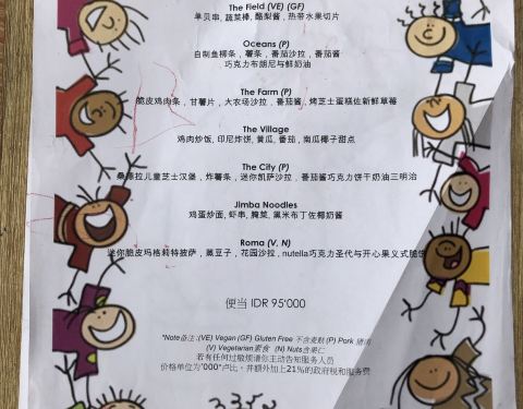 首先给我留下最深印象的是这里的服务,服务生每个都非常贴心,有中文菜单,还有儿童菜单,儿童餐十分可口,虽然给宝宝点了,但是都被我们带人瓜分了…… 其次,这里的环境真的好棒,虽然我们来的当天乌云密布,眼看着就要狂风暴雨,但是就在一瞬间红霞满天,还有一道美丽的彩虹,第一次在国外过年,天气还是很给力 最后就是菜品,我们是根据自己喜好点的,每一道都很好吃,专门给家庭用餐分了小中大份,可以根据自己的需求来点,我们4个大人一共花了一百八十多万印尼盾,性价比还不错啦,值得推荐