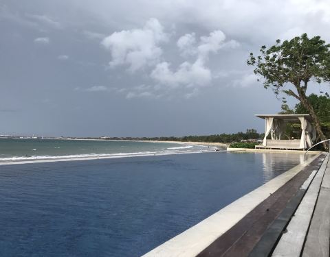 无边的泳池,热情的接待,完美的氛围,一切都很圆满,驻场的乐队一晚是几个表演,一点都不会觉得闷,食物很多元化,图文并茂的中文餐牌,爱不释手,金枪鱼沙拉,焦糖酱配面包,鸭肉,鹅肝,迷之食物,吃得有点乱,不要以为会很贵,实际上物超所值,景色很棒,都不想离开的感觉。