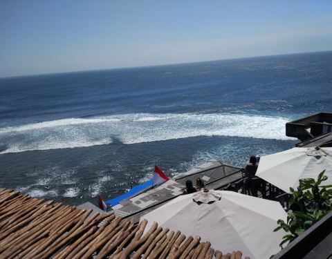 悬崖上的酒吧餐厅,可赏辽阔海景和壮美日落。还可以俯瞰一望无际的印度洋美景。一旁就是蓝点无边泳池和玻璃教堂。夜幕降临时还有DJ打碟,气氛很好。我是12月份去的,圣诞前后的巴厘岛,正午时分依然热的够呛。貌...悬崖上的酒吧餐厅,可赏辽阔海景和壮美日落。还可以俯瞰一望无际的印度洋美景。一旁就是蓝点无边泳池和玻璃教堂。夜幕降临时还有DJ打碟,气氛很好。我是12月份去的,圣诞前后的巴厘岛,正午时分依然热的够呛。貌似这家打卡最多的露台上的露体座位。这家的室内2楼,无敌海景大落地窗,而且冷气充足。