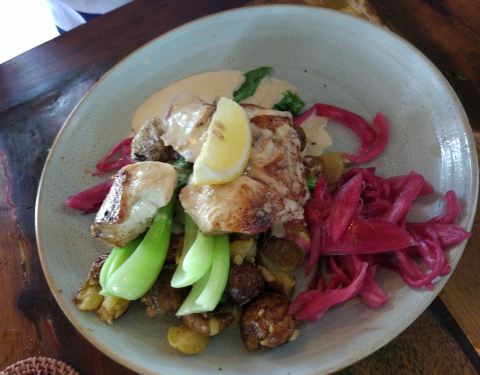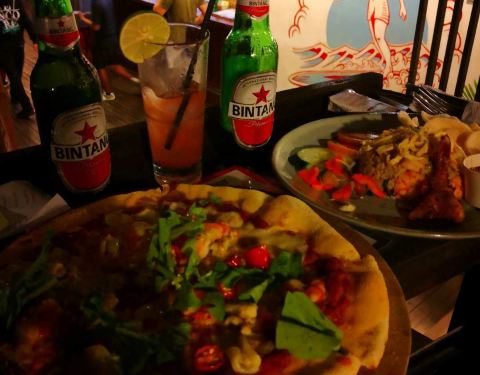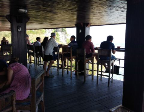 误打误撞找了个好餐厅,在库塔海滩边,离蓝点酒店也很近。是个悬崖边的酒吧餐厅,景观特别美,沿着海岸线,很少几乎没有中国旅行团。 东西出品不错,新鲜可口,还可以喝酒,服务也不错,价钱适中。