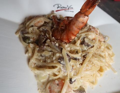 海滩这里数得上的饭店了,主要以海鲜为主,里面的青口贝味道不错,海鲜意大利面很鲜美,要了一杯西瓜汁,冰块有点点多,总体还不错。