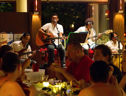 花园一样的餐厅哦,在里面除了吃饭还可以看看风景,晚上的灯光很亮,做的有意大利菜还有巴厘岛的烤海鲜,那个龙虾烤的还不错的。