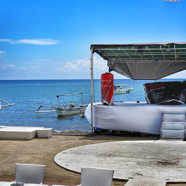 就在沙滩旁边,晚上会有歌舞表演,据说周末还会有露天的烧烤,可惜我去的几天都是下雨没有见到,非常的海滩风情,也非常的有巴厘岛的特色。