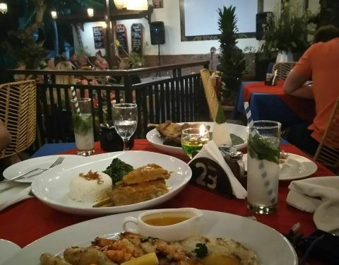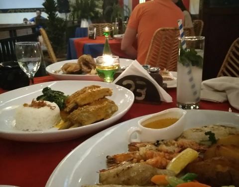 基本上的顾客都是在海滩边玩了,然后就近选择用餐的,服务很热情,会跟你吧啦个不停,听着很搞笑的中文,笑得太欢乐了,餐厅还有现场驻唱,喝着小酒,吃着美食,聊着家常,吹着海风,人生就是如此。