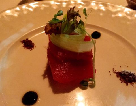 - 两种套餐,6道菜和8道菜,都有牛排,牛排很嫩,其他都很有特色,有个意大利水饺还有鹅肝,与别处做的不同