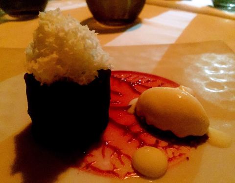 这家餐厅位于丽思酒店内,环境超一流,非常漂亮,气氛超赞,进入酒店服务员会先带客人到私人包房,小房子是藤条编的,非常有特殊,窗外就是河流山谷,非常漂亮。服务人员很专业,会主动推荐菜品和配酒。菜品很精致,味道没有太大亮点,相比米其林一星的头衔还需要再努力。
