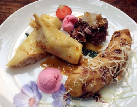 从小小的门进入后一个绿植掩映的院落,井井有条,这里提供非常地道的巴厘岛菜品。烤猪排味道深入,肉质酥软