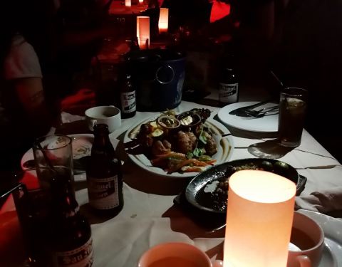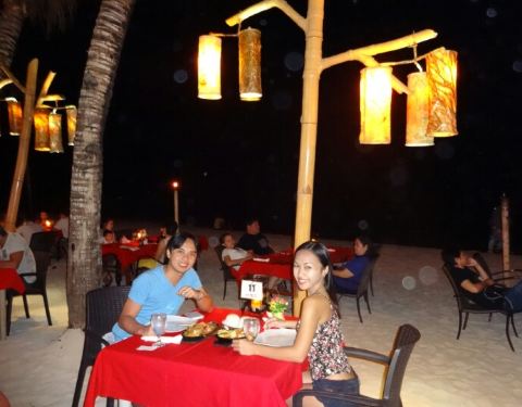 Dinner at the beach with acoustic songs playing. Really the best place for a romantic dinner. Try their Prawns in Garlic and sizzling liempo! :D staffs are very accommodating as well.
