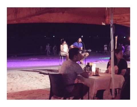 Dinner at the beach with acoustic songs playing...