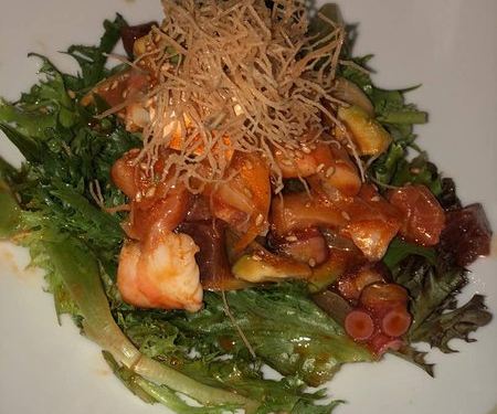 南美风格日式料理,听起来挺新奇的,其实就是个巴西裔的日本老板开的店,不过几个大厨看样子都是日本人,寿司都是偏美式的那种,以各类酱汁来进行调味而不是靠鱼生和酱油来提味。