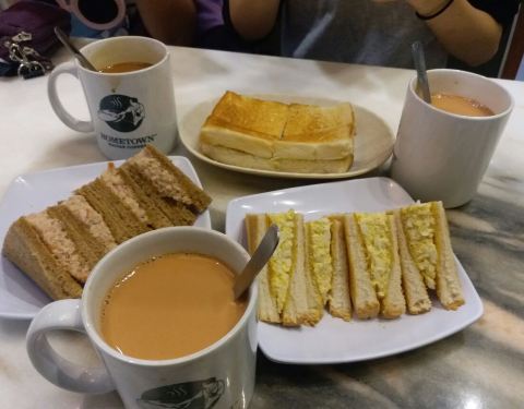 马来传统早餐,有卖咖啡和吐司之类的,也有面点。感觉和新加坡的亚坤类似。咖啡和奶茶有点像港式的风味