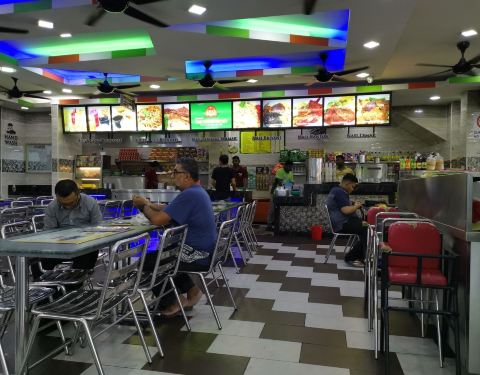 因为在机场想随便找一家味道还行的吃,这家味道真心很一般,我们是冲着人不少去吃的,就在机场的一楼,KLIA2,超市的旁边。菜单上面的图片和实际的东西差别还是比较大,所以点餐的时候要注意不要太参考图片,看名字理解会比较合适,我们点的三明治就比较失误,图片上的是比较酥脆的样子,而上菜以后发现是软软的蛋饼,基本不想吃,和想象的口感差了很多。然后面的话不是很热,感觉像是煮熟好一阵才端上桌的,炒饭也是,而且只有两片黄瓜的配菜,总体很一般。