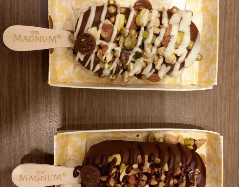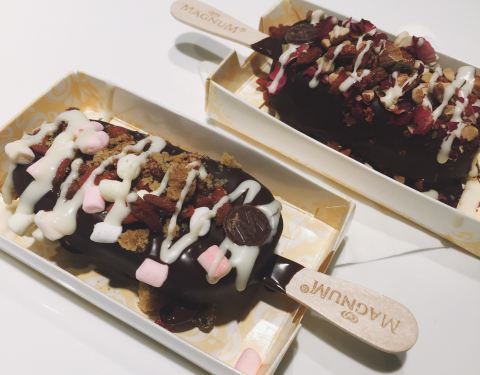 Select the magnum of choice, dip it in chocolate of choice, coat it with 3 toppings and a decor line. Volla. Must visit place if you love ice creams.