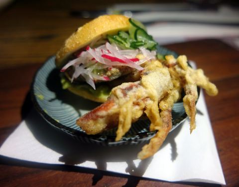 crunchy soft shell crab arepa