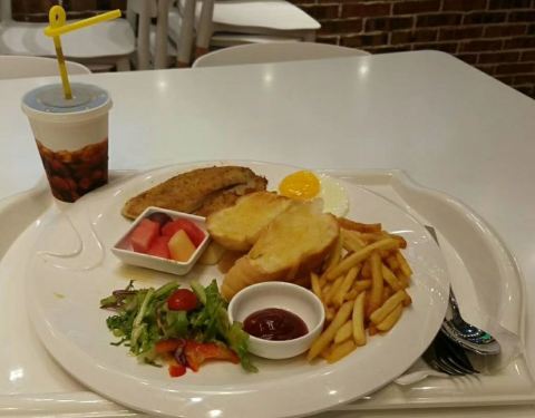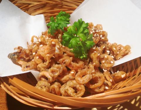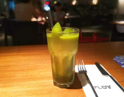 很喜欢这里的环境,室内安静舒适,室外景色很美,装修的很有特色,食物也很有特色。炸小鱿鱼甜甜脆脆的,好像在吃零食一样。 鸡米花披萨特别好吃,披萨面饼很薄,但是烤的脆脆的,鸡米花和新鲜菠萝都很大块,因为饼身薄薄的所以不会吃着腻 日本咖喱味道很正宗,厚切的猪肉裹着浓浓的咖喱汁,肉质很嫩,又入味,下面的米饭是煎成好像米饼一样的,吃着脆脆的 还有墨鱼汁染黑的黑米饭,上来的时候那个鸡蛋其实是在一个敲开的蛋壳里的,看着很可爱,饭里的海鲜很新鲜 饮料点的一个泰国冰绿茶很特别,比日本绿茶要浓,还有草莓冰饮,是新鲜草莓榨出来的,还有这里酒的选择很多价格也低