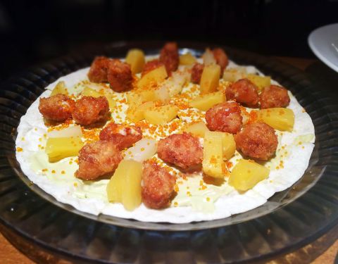 - 鸡米花披萨特别好吃,披萨面饼很薄,但是烤的脆脆的,鸡米花和新鲜菠萝都很大块,因为饼身薄薄的所...