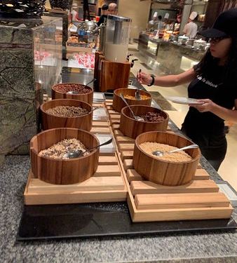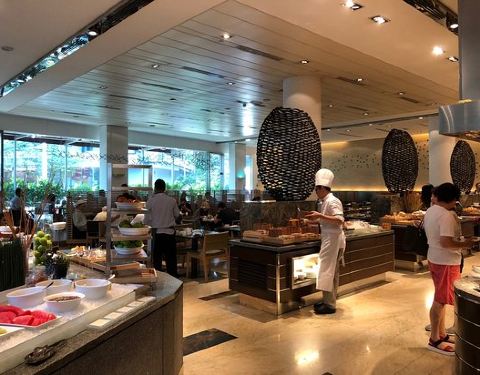 洲际的自助餐厅,环境非常棒,室内鱼类水族馆周围环绕着优美的水景,透过玻璃窗可以俯瞰人工瀑布。食物选择广,有西餐,中餐,日料也有东南亚食物,味道还可以,但没什么亮点,中规中矩。环境气氛5星没跑。