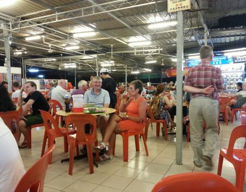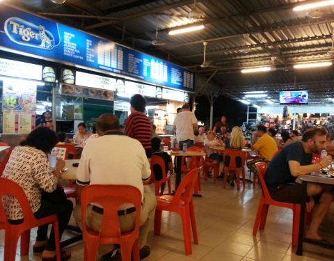 相当于中国的夜市大排档,里面的品种还算是比较多的。很多中国的游客和老外都会来这里吃,主要是体验一下气氛嘛。去的时候已经9点多了,沙爹烤串只有鸡肉的,牛肉的卖完了。里面只有一家卖饮料,椰子汁很好喝,一...相当于中国的夜市大排档,里面的品种还算是比较多的。很多中国的游客和老外都会来这里吃,主要是体验一下气氛嘛。去的时候已经9点多了,沙爹烤串只有鸡肉的,牛肉的卖完了。里面只有一家卖饮料,椰子汁很好喝,一个不够要了两个。其余的炒粿条、福建炒面、蚵煎之类的也很不错,关键是便宜。
