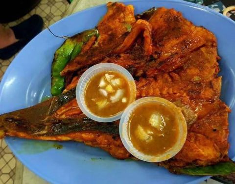 应该说这里是专为游客准备的美食中心,中心里面马来的各种小吃应有尽有,可能我个人口味的原因,马来特色娘惹味我是怎么也欣赏不来,我们一行五人点了个娘惹口味的烤红师鱼,每人一口后就再没动过,呵呵。其它东...